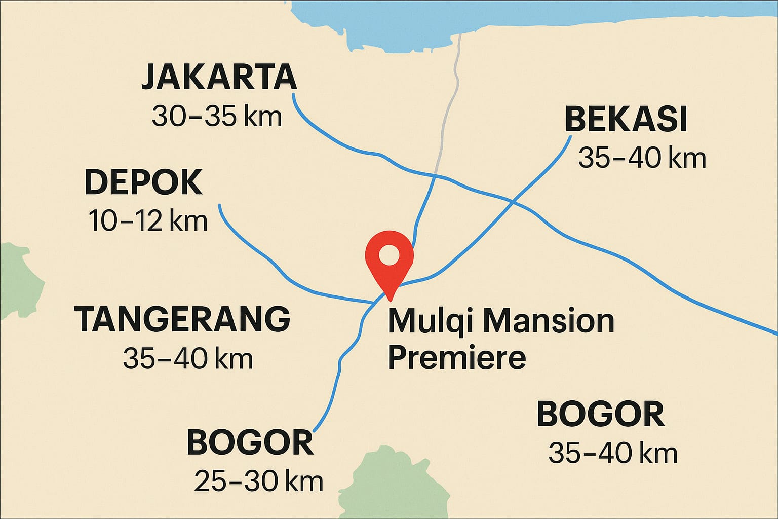 Dikelilingi oleh Sarana Transportasi berupa 2 Akses Pintu Tol dan Stasiun KRL Citayam, Dekat Mall The Cibubur, serta sangat dekat dengan Pusat Kesehatan berupa Rumah Sakit ternama